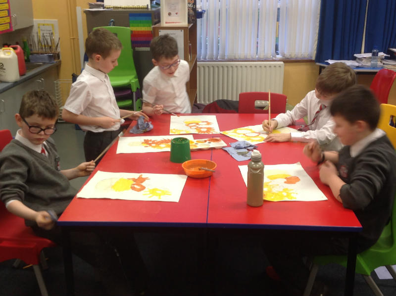 P3/4 are thoroughly enjoying their painting session on 'Sunflowers' by Van Gogh. Some fantastic artists in the making! Well done boys and girls.